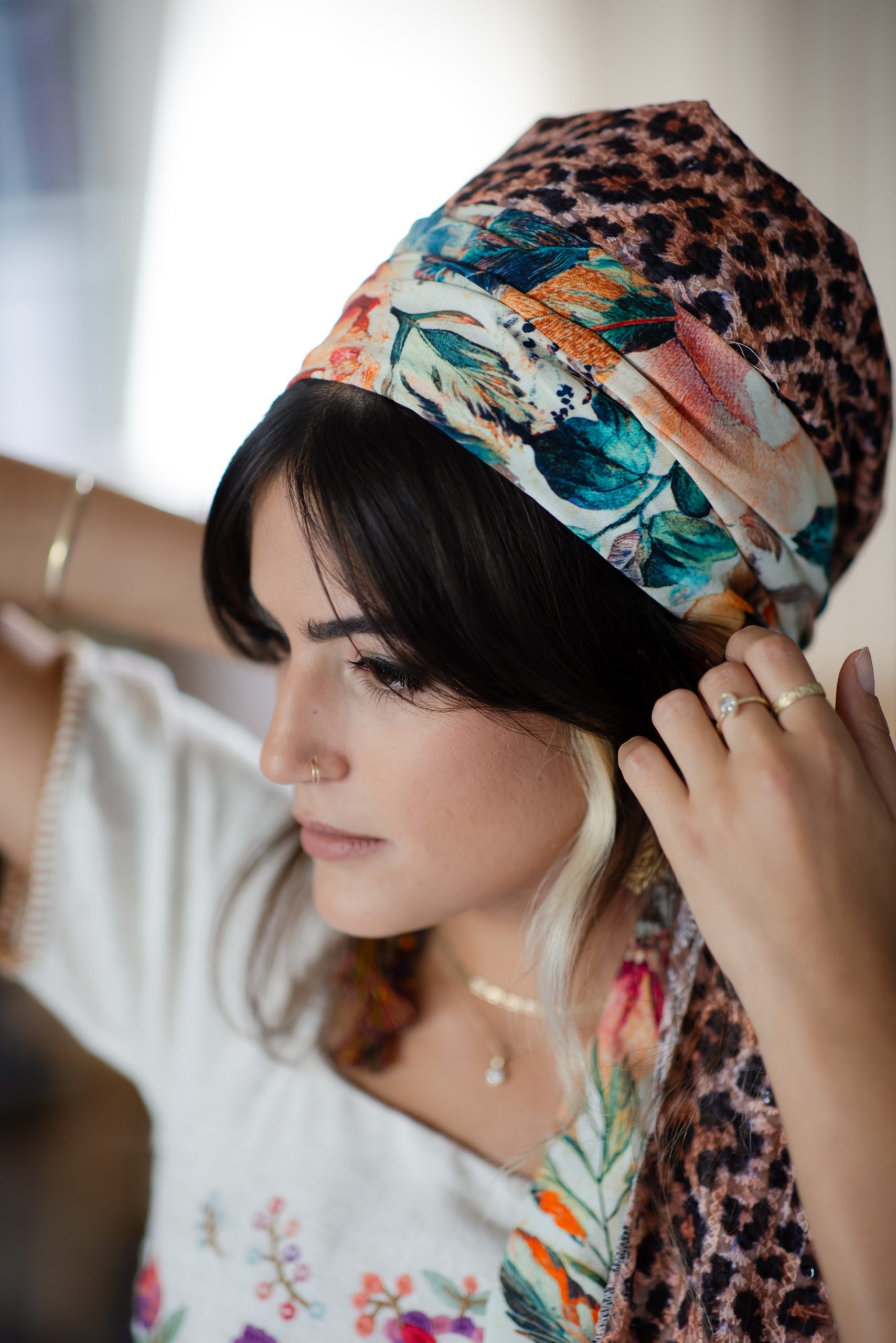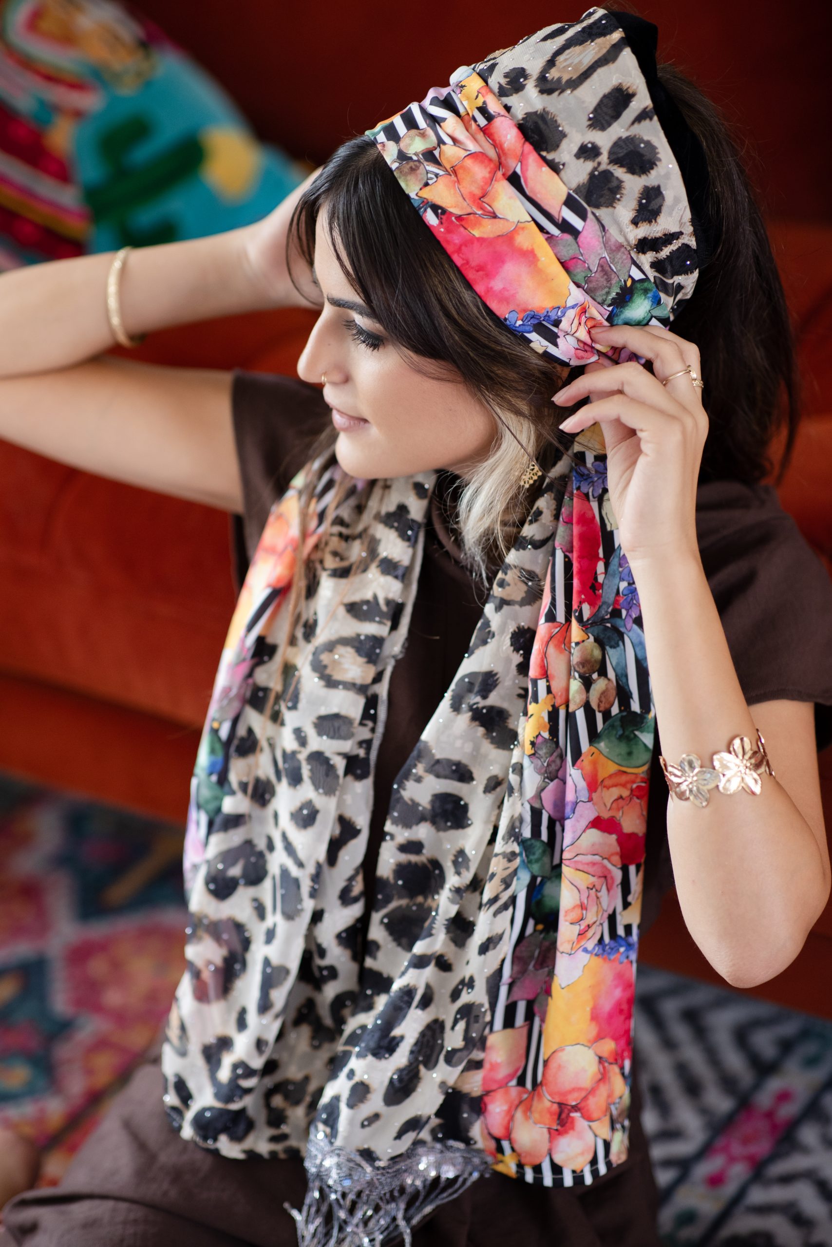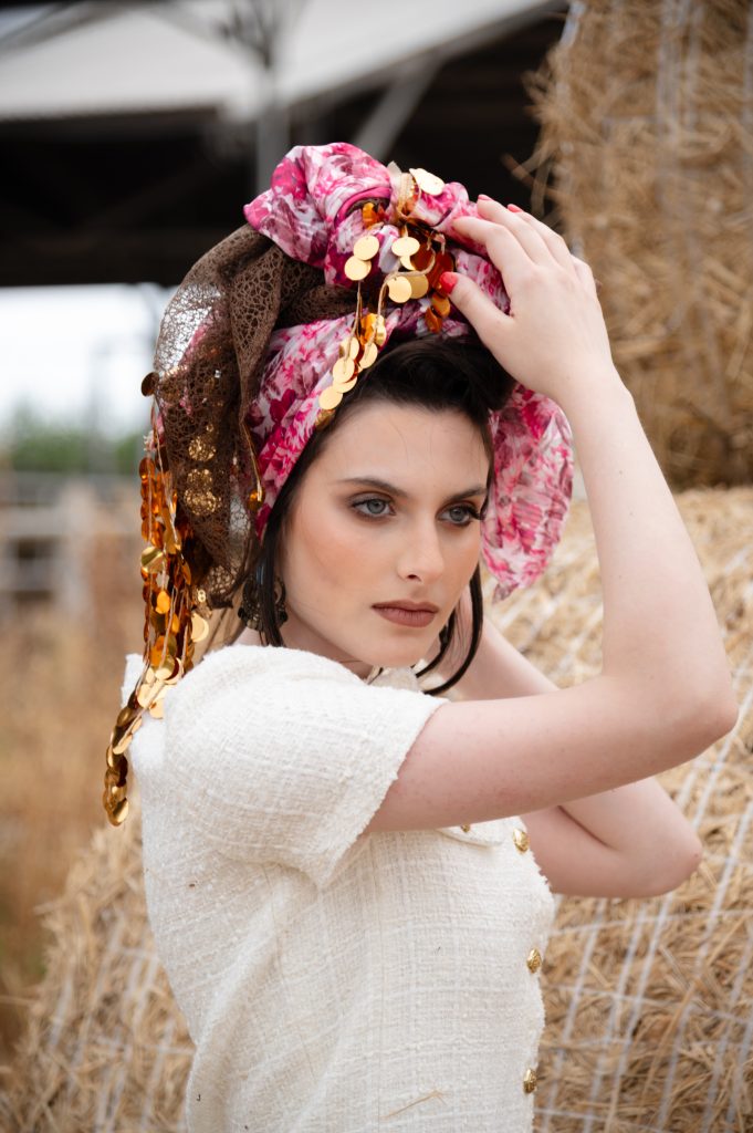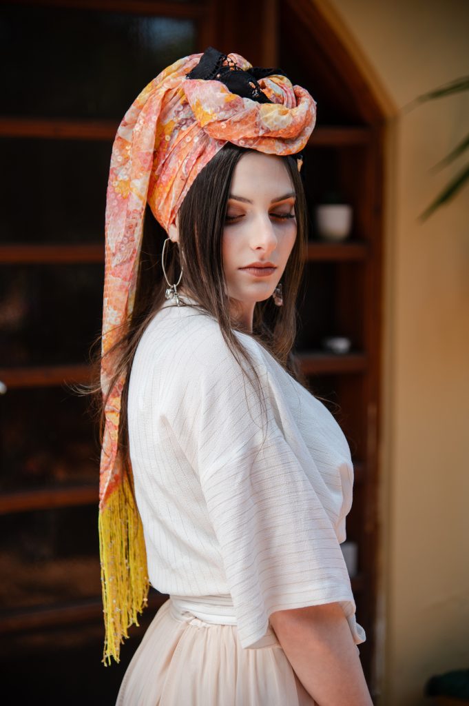 מטפחות מעוצבות העשויות מחומרים משובחים תחת שילוב מנצח העובר תחת ידי אורית אורפלי מעצבת המותג.