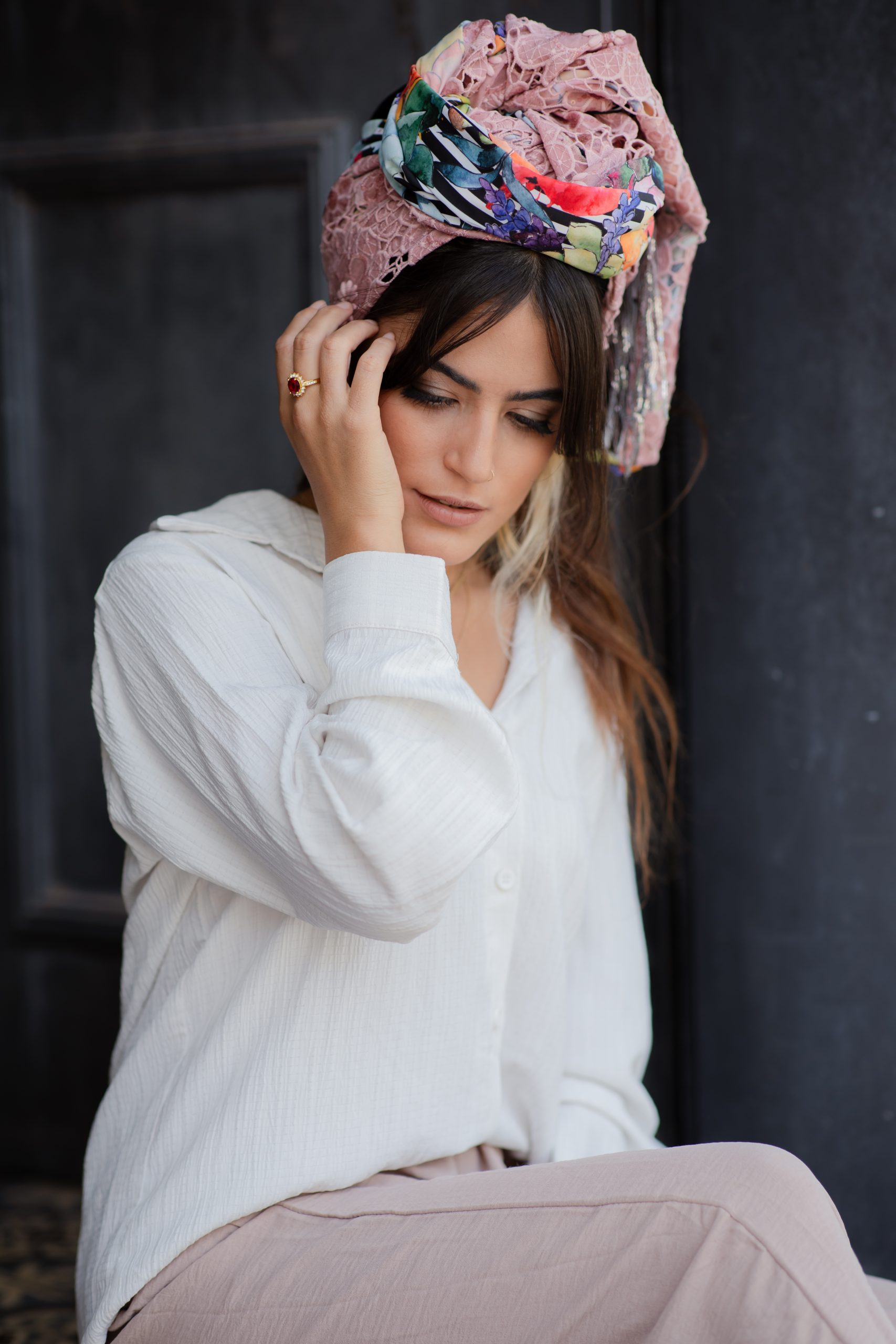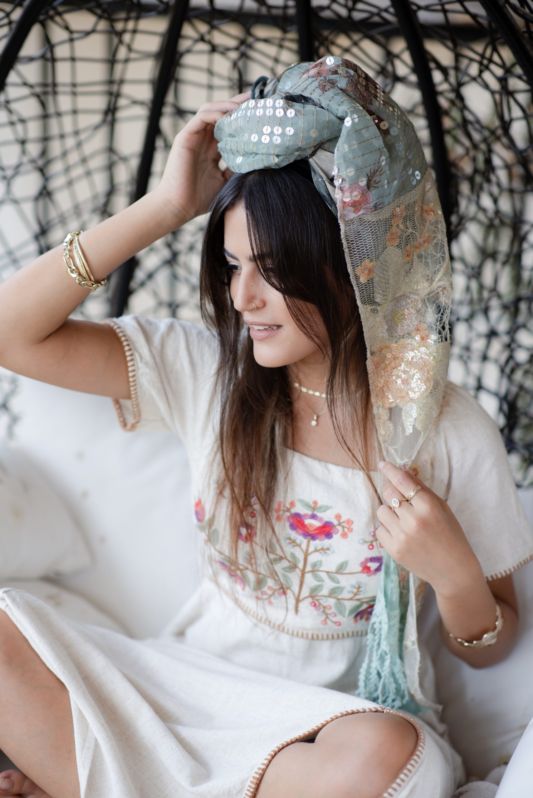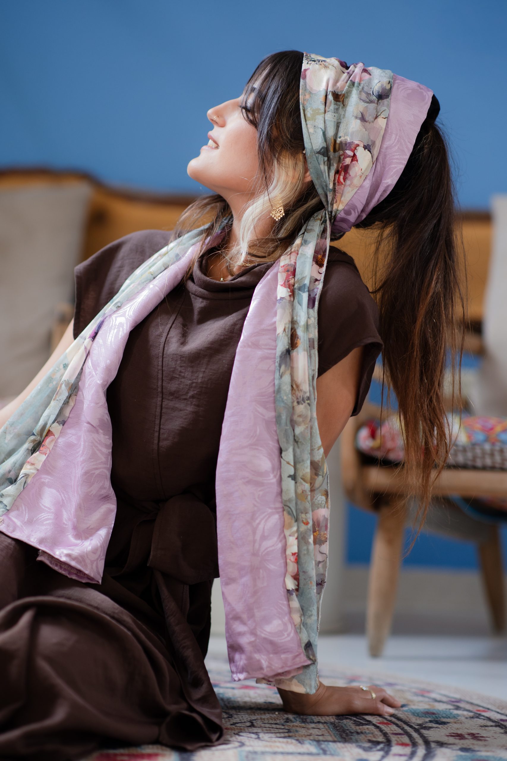 מטפחות מעוצבות העשויות מחומרים משובחים תחת שילוב מנצח העובר תחת ידי אורית אורפלי מעצבת המותג.