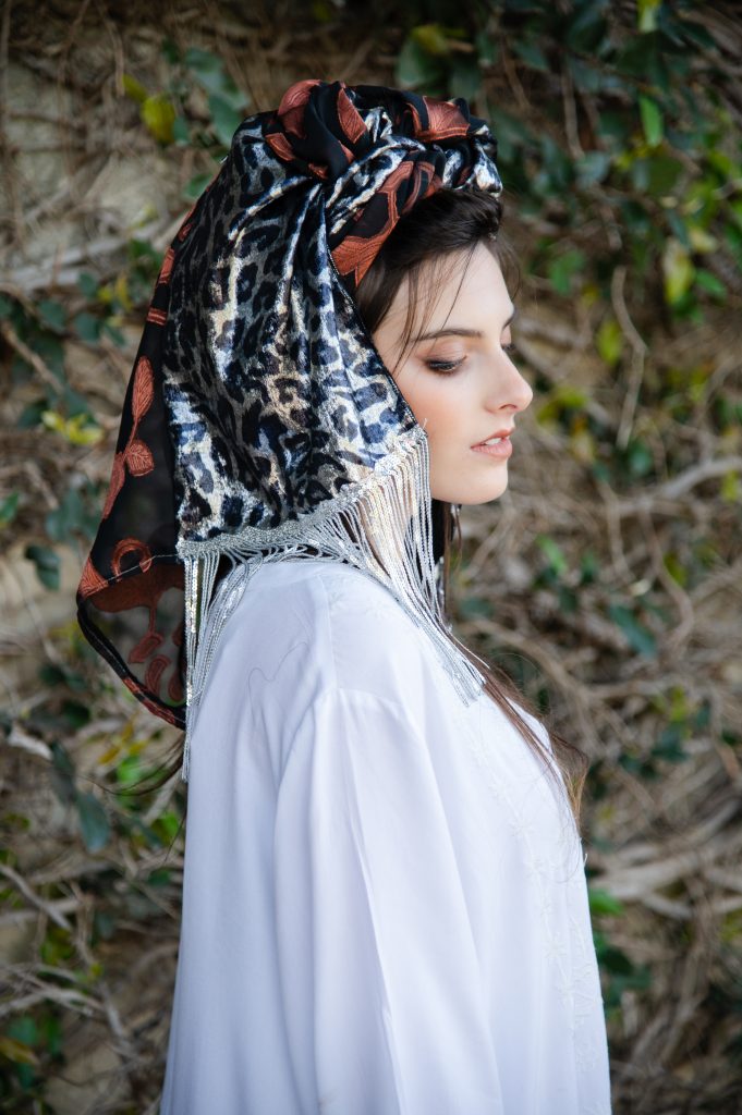 מטפחות מעוצבות העשויות מחומרים משובחים תחת שילוב מנצח העובר תחת ידי אורית אורפלי מעצבת המותג.