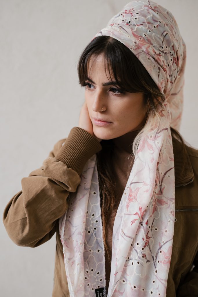 מטפחות מעוצבות העשויות מחומרים משובחים תחת שילוב מנצח העובר תחת ידי אורית אורפלי מעצבת המותג.