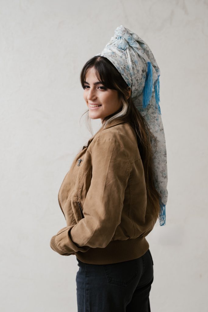 מטפחות מעוצבות העשויות מחומרים משובחים תחת שילוב מנצח העובר תחת ידי אורית אורפלי מעצבת המותג.