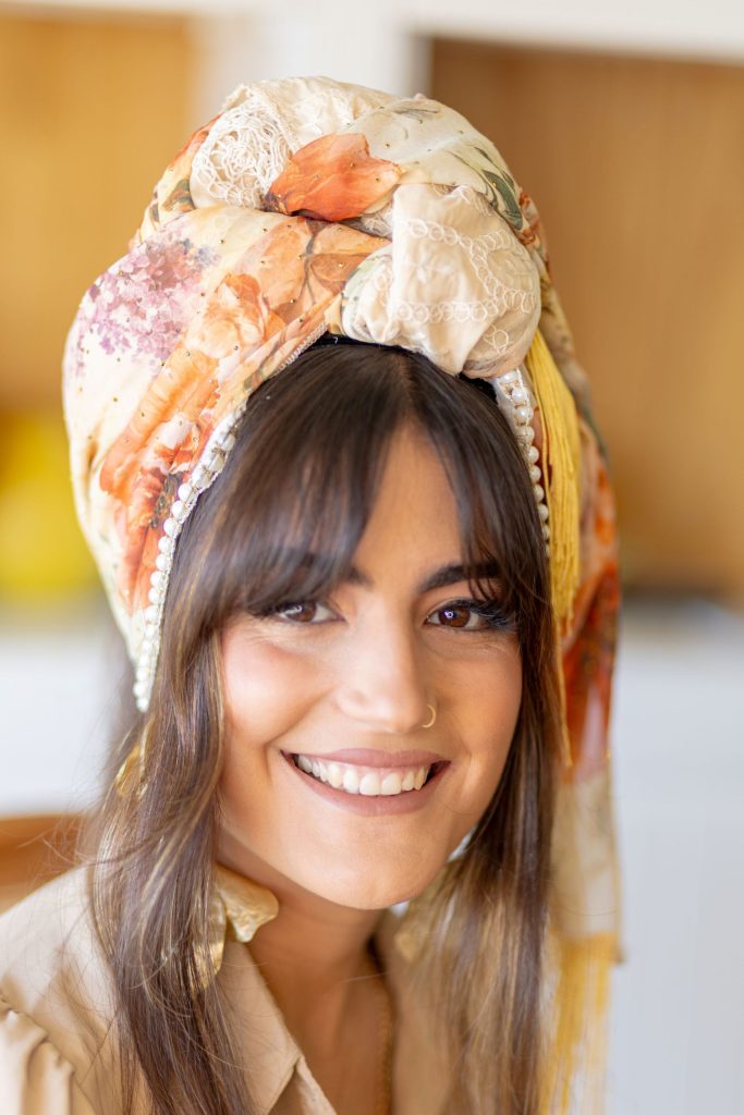 מטפחות מעוצבות העשויות מחומרים משובחים תחת שילוב מנצח העובר תחת ידי אורית אורפלי מעצבת המותג.