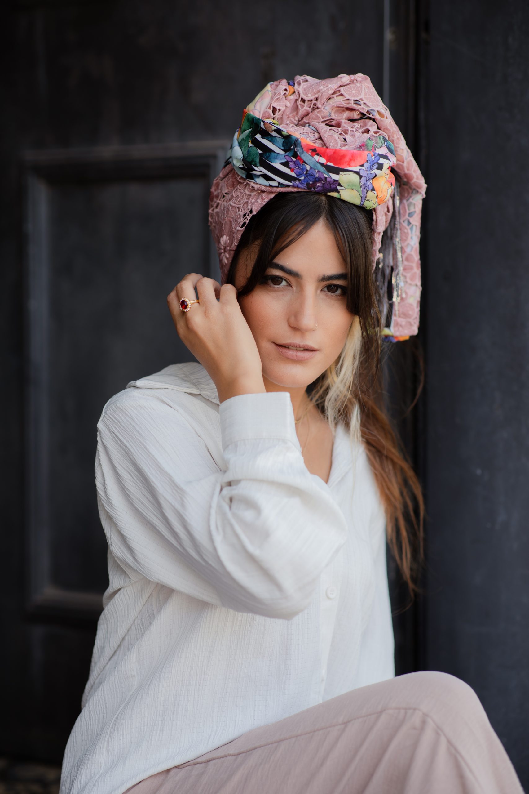 מצד אחד תחרה בשרנית וחגיגית בגון ורוד מצד שני כותנה צבעונית שמחה ורעננה.
