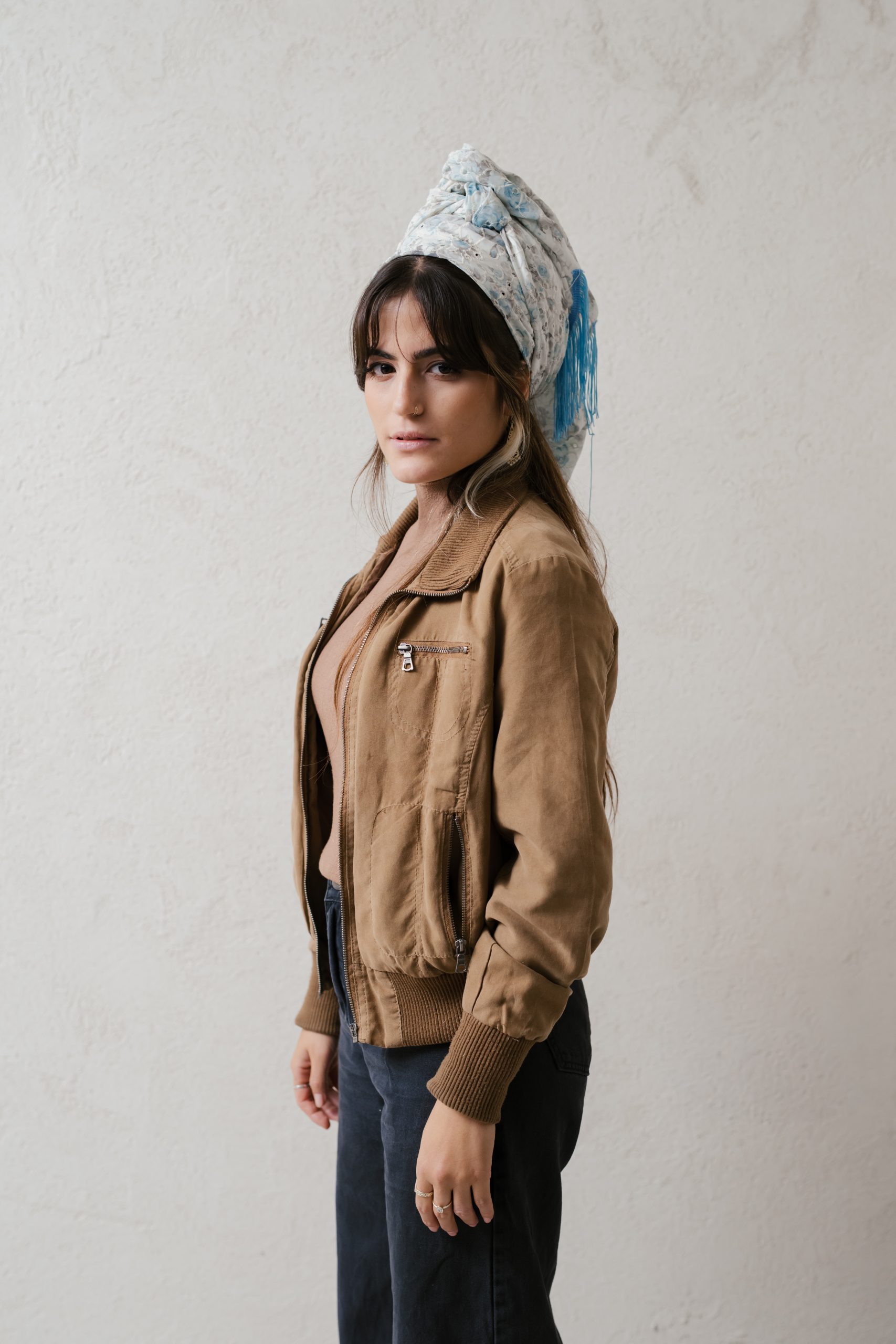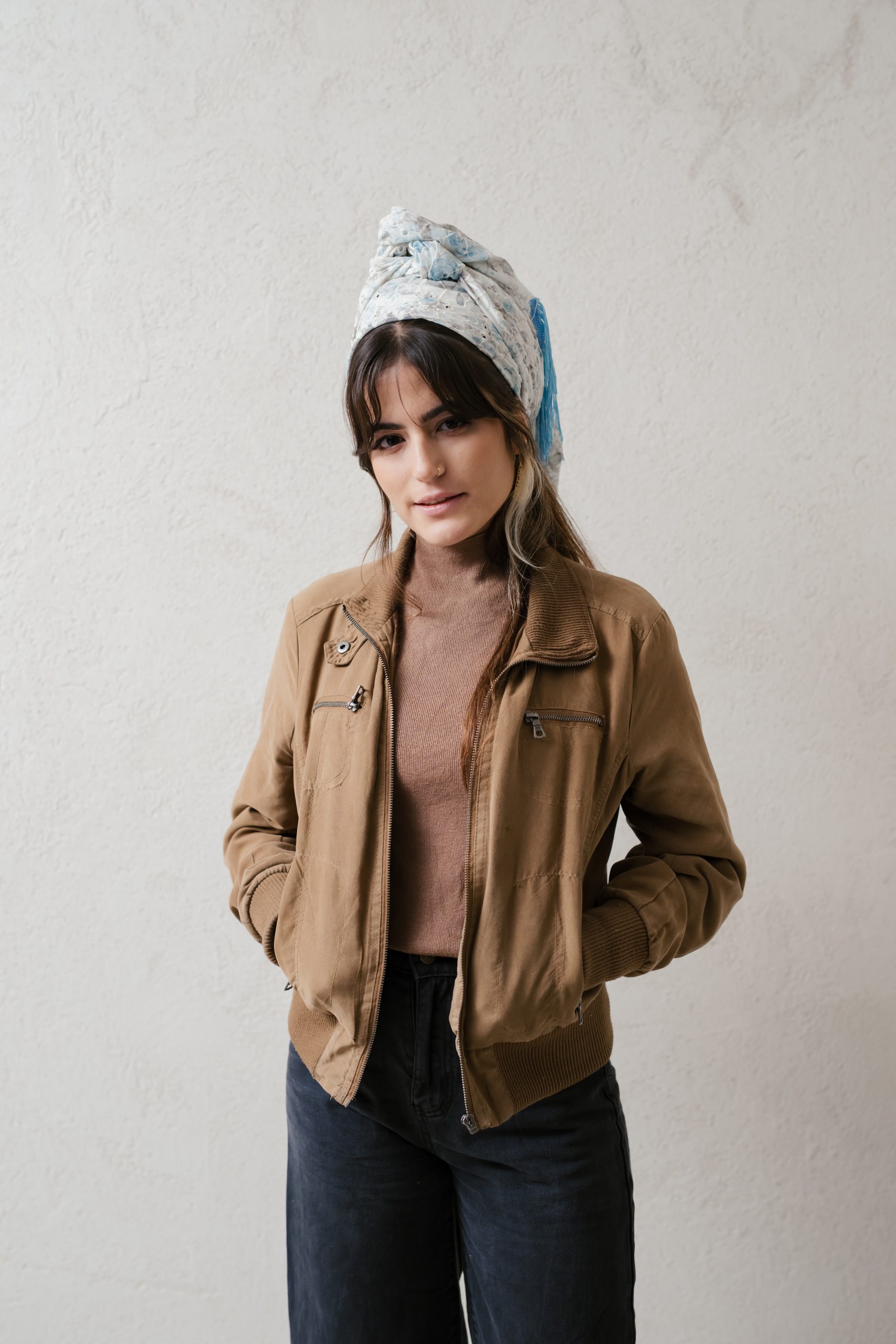 משולש ענק כותנה בריקמה עדינה בהדפס עדין